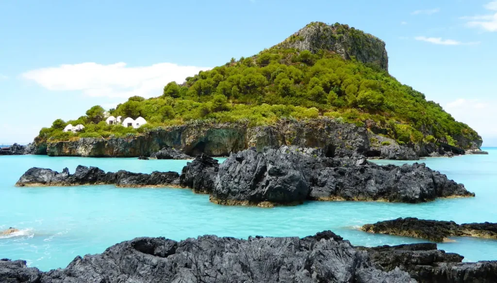 Con un perimetro di appena 4 km è interessante per la sua forma: piatta in cima e dirupata nelle coste, sforacchiata da varie grotte. Visita alla grotta Azzurra, all’Arco Magno ed alle varie grotte.